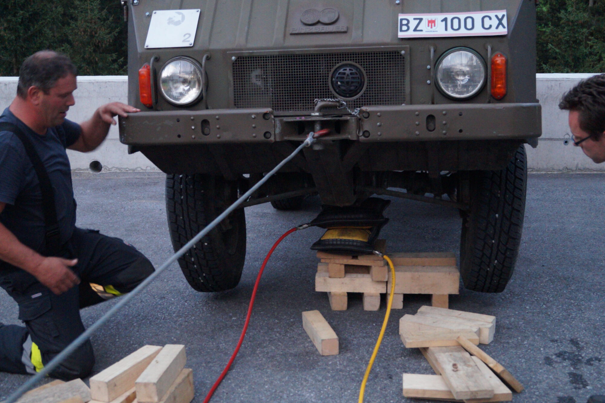 Am Donnerstag wurde wieder geprobt! An der Reihe waren dieses Mal die Hebekissen, mit denen wir das Pinzgauerle von Thomas hochheben durften.