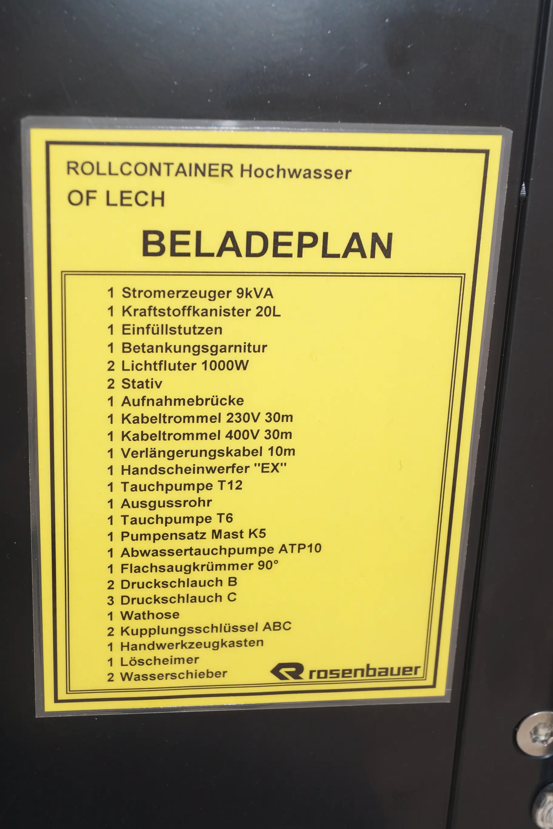 Der Rollcontainer Hochwasser dient dazu, als kleine kompakte aber eigenständige Einheit beim Hochwassereinsatz alle Szenarien abdecken zu können.